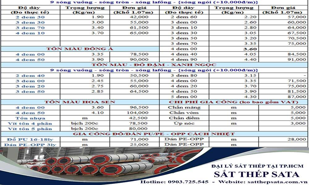 Bảng Báo Giá Tôn Hoa Sen Mới Nhất | Sắt Thép Sata